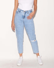 Jeans Premium relax Mom Fit tiro alto intermedio largo al tobillo | 100% algodon