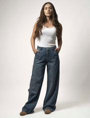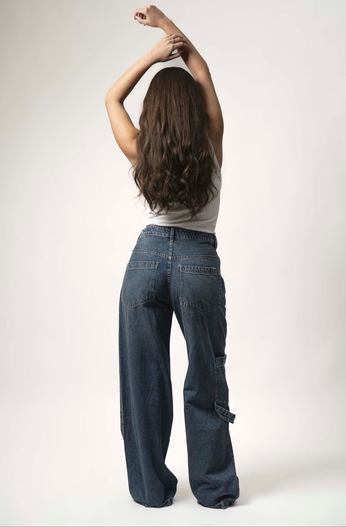 JEANS BAGGY TIRO ALTO, CONFECCIONADO EN TELA DE DENIM 100% ALGODÓN, ESTILO RELAJADO Y CASUAL. ÚSALO CON CAMISETA PARA UN ESTILO URBANO Y AGREGA UNA PRENDA FORMAL COMO UN BLEAZER PARA INTEGRARLO A TU ESTILO MÁS EJECUTIVO.